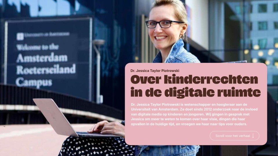Dr. Jessica Taylor Piotrowski is wetenschapper en hoogleraar aan de Universiteit van Amsterdam. Ze doet sinds 2012 onderzoek naar de invloed van digitale media op kinderen en jongeren. Wij gingen in gesprek met Jessica om meer te weten te komen over haar visie, dingen die haar opvallen in de huidige tijd, en vroegen we haar naar tips voor ouders.