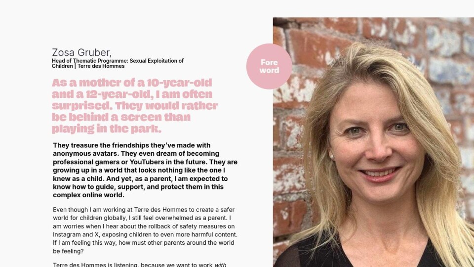Even though I am working at Terre des Hommes to create a safer world for children globally, I still feel overwhelmed as a parent. I am worries when I hear about the rollback of safety measures on Instagram and X, exposing children to even more harmful content. If I am feeling this way, how must other parents around the world be feeling?